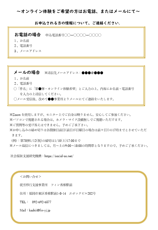 本日は、「繋がってるよ!笑顔になろうよ!」シリーズのオンライン体験のお知らせです❗