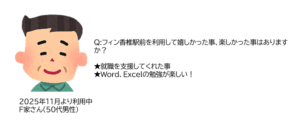 フィン香椎駅前事業所の詳しいご案内をお送りします。見学や個別相談、オンライン個別相談からでもOKです。